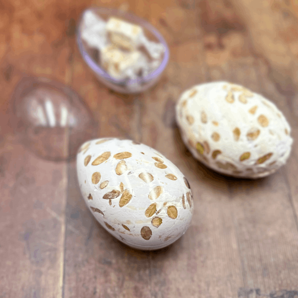 The roasted almonds provide a satisfying crunch, while the rich honey and cooked sugar create a smooth sweetness, perfectly balanced by the subtle saltiness of the egg whites. Infused with natural vanilla and enhanced with pistachios, this nougat offers an irresistible harmony of textures and flavours. This year, why not swap the traditional chocolate egg for a delicious, speckled nougat egg? Inside each nougat shell, you’ll find 25g of individually wrapped nougats, making it a delightful surprise for Easter! Beautifully packaged in an elegant Easter design, it makes the perfect gift or indulgent seasonal treat.