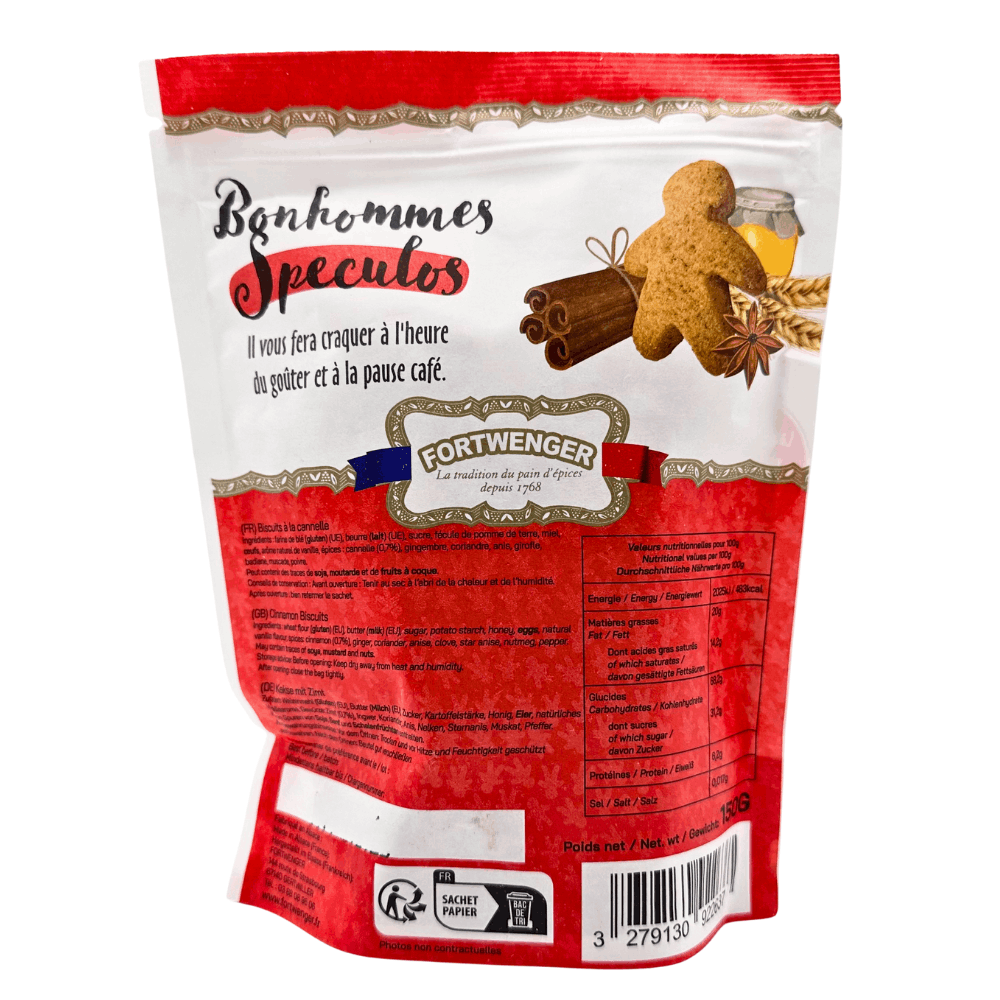 Bring a touch of Alsace to your table with Fortwenger’s speculoos gingerbread men, made in Gertwiller, Alsace, France. Each cookie is baked in a resealable bag, ensuring freshness and crispness.