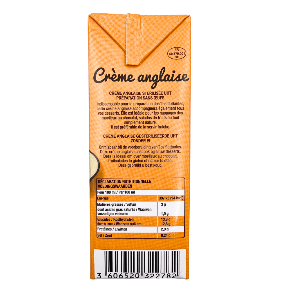 Our creme anglaise is ready to use, saving you time in the kitchen without compromising on the authentic, homemade taste you love. Whether you’re preparing a fine French dessert or simply elevating everyday sweets, this versatile dessert cream is an essential addition to your pantry. Perfect for home bakers and chefs looking to bring the classic flavours of French cuisine to their creations.