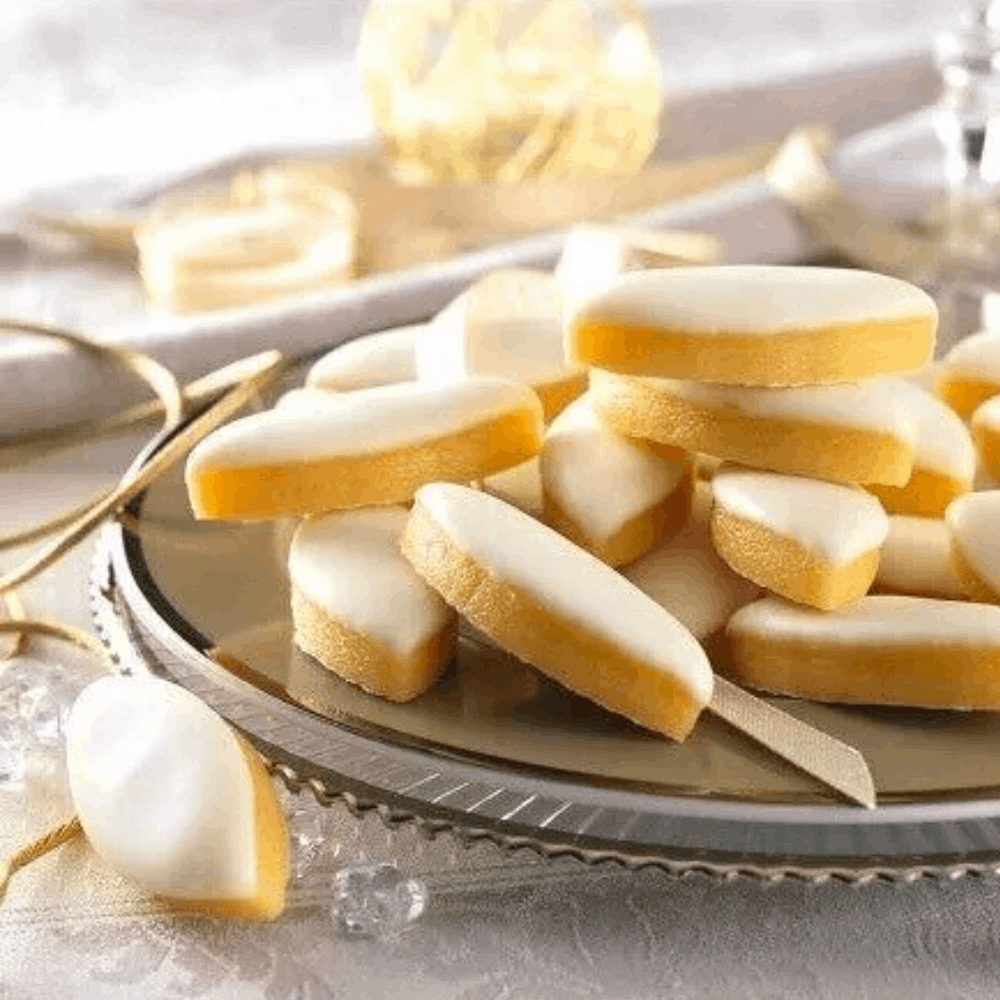 Made using a traditional recipe, calissons blend ground almonds, candied fruit (typically melon and orange), and sugar into a smooth, fragrant paste. This mixture is carefully rolled out and cut into distinctive oval shapes, reminiscent of an almond or a boat. Each piece is then delicately coated with a thin layer of royal icing, creating its signature glossy finish. The calissons are gently dried in a low-temperature oven to enhance their flavours while maintaining their soft yet firm texture.