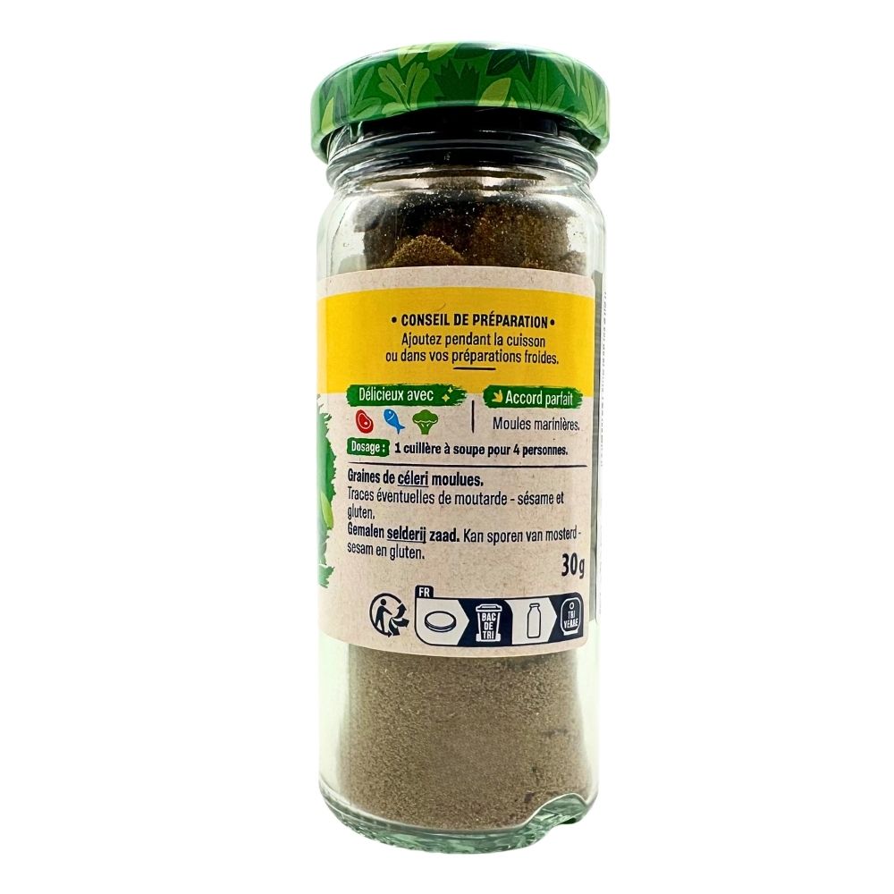 Sainte Lucie ground celery seeds bring a bold, aromatic touch to your kitchen. Made in France from carefully dried celery seeds, finely ground into a smooth powder, this seasoning offers an intense flavour with a hint of bitterness. Its distinctive taste combines the fragrant notes of nutmeg and parsley, making it a versatile ingredient for a variety of recipes. Enhance your sauces, gratins, tomato juice, cheese soufflés, soups, stews, and slow-cooked vegetables with its rich aroma. A perfect alternative to salt, just a pinch can elevate the depth of your dishes.
