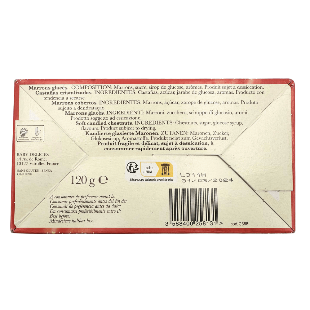 Ingredients: chestnuts, sugar, corn syrup, flavouring